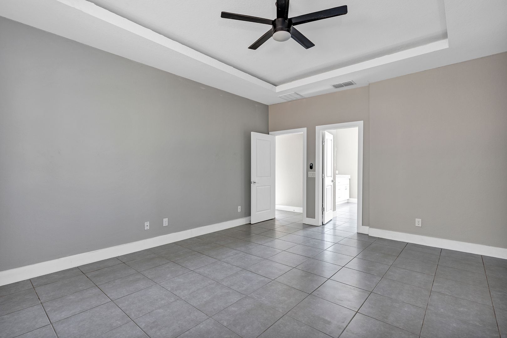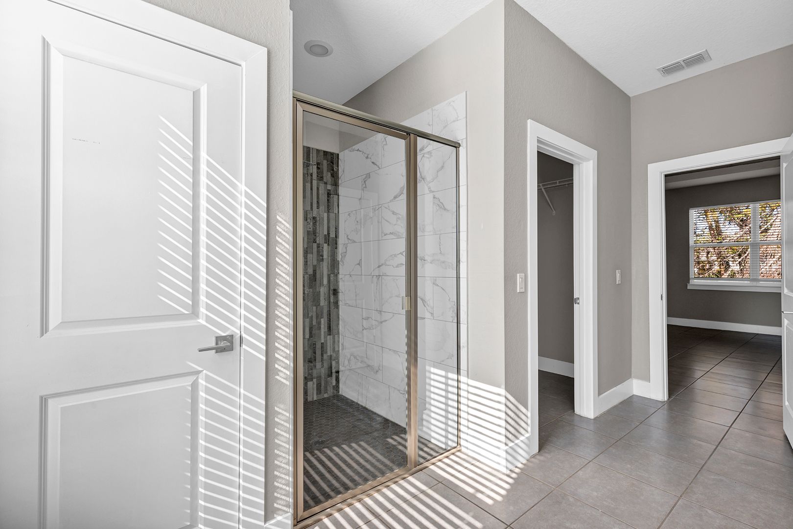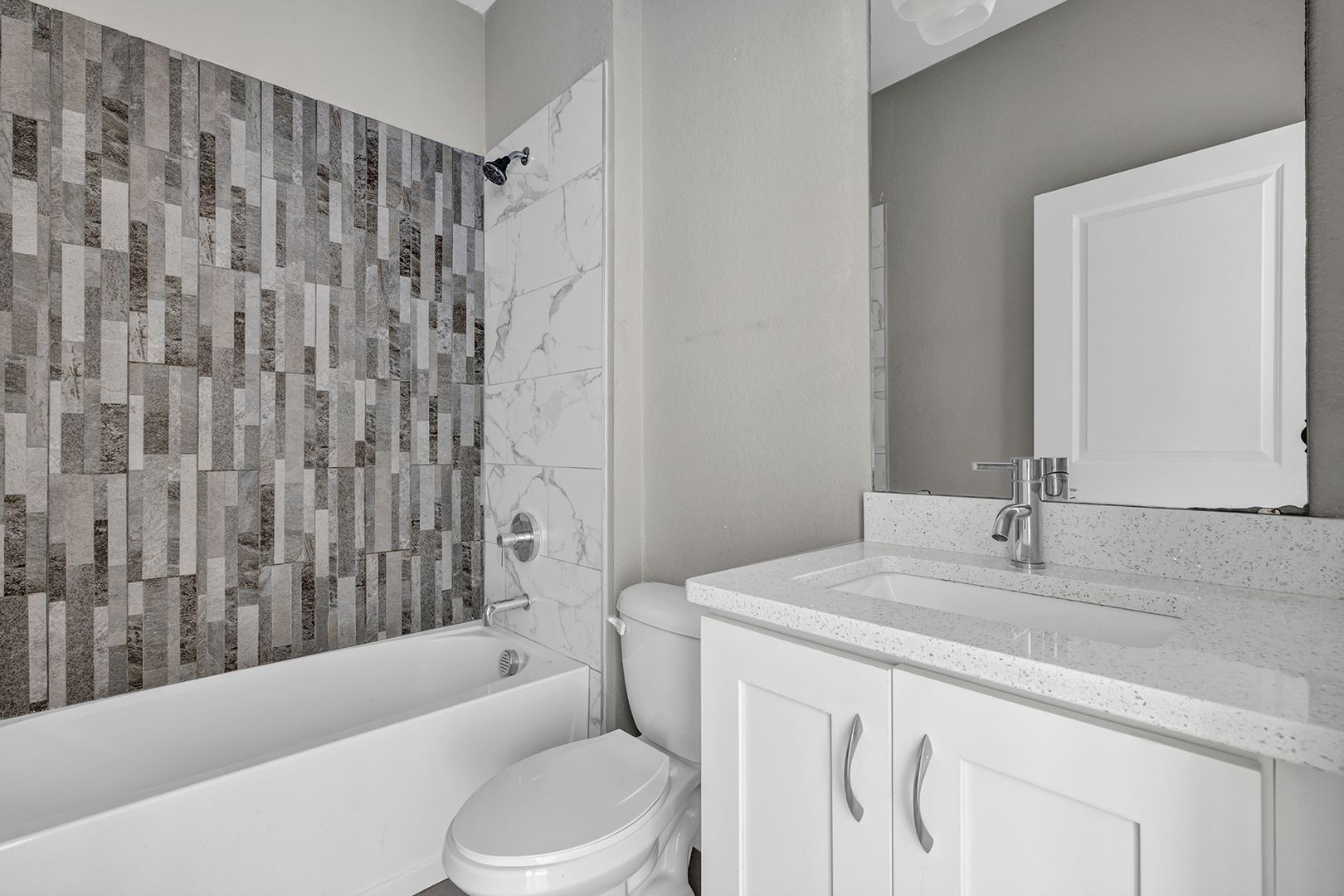 The primary suite offers privacy and comfort with its own ensuite bathroom featuring a spacious vanity, modern fixtures, and a walk-in shower. The second full bathroom is conveniently located for guests and additional bedrooms and includes a clean, updated vanity and a full bathtub and shower combination. Both bathrooms are designed with a modern touch and easy-to-maintain finishes.