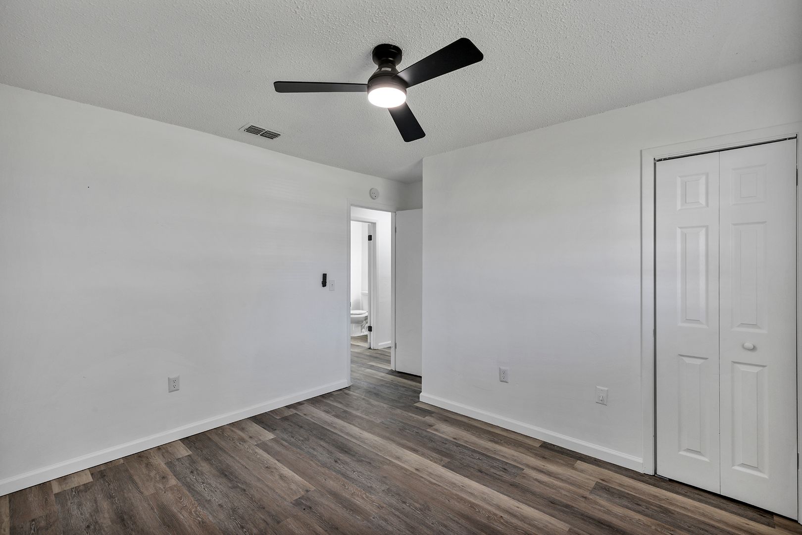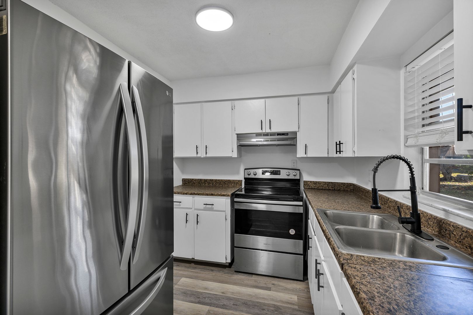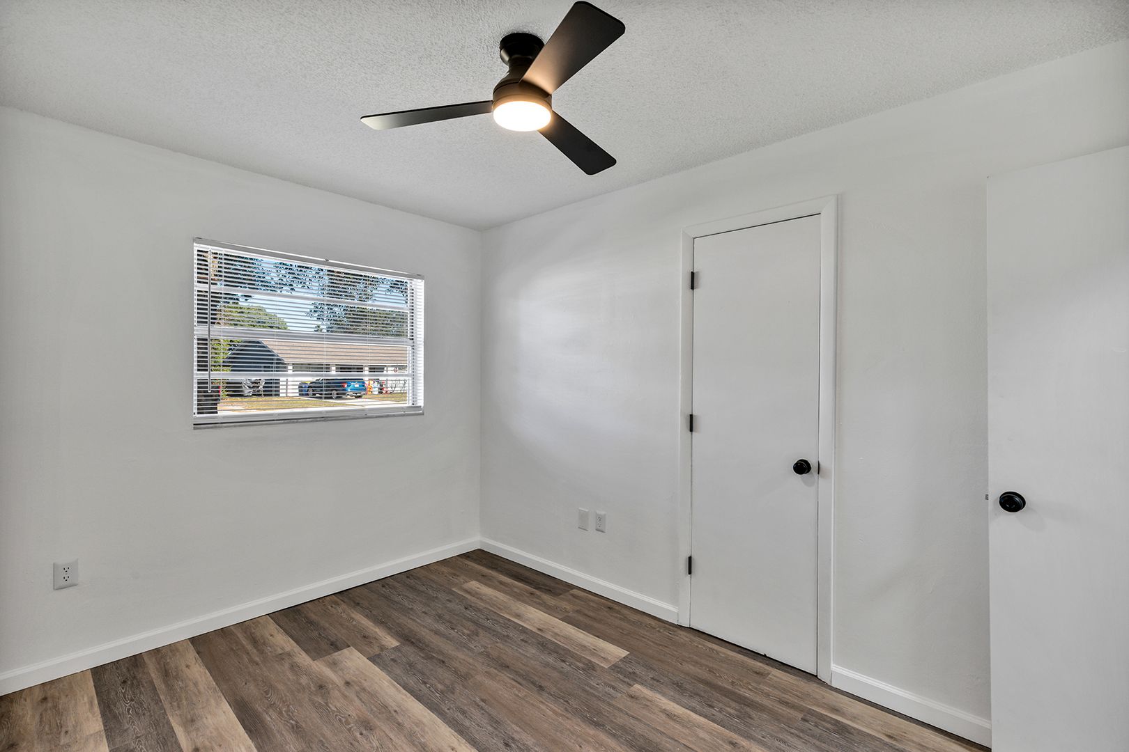 The home features three well-sized bedrooms, each providing ample space for rest, or guest accommodations. The bedrooms are finished with durable vinyl flooring, offering a modern appearance while being easy to maintain. Updated windows throughout the home allow for abundant natural light and contribute to energy efficiency and overall comfort.