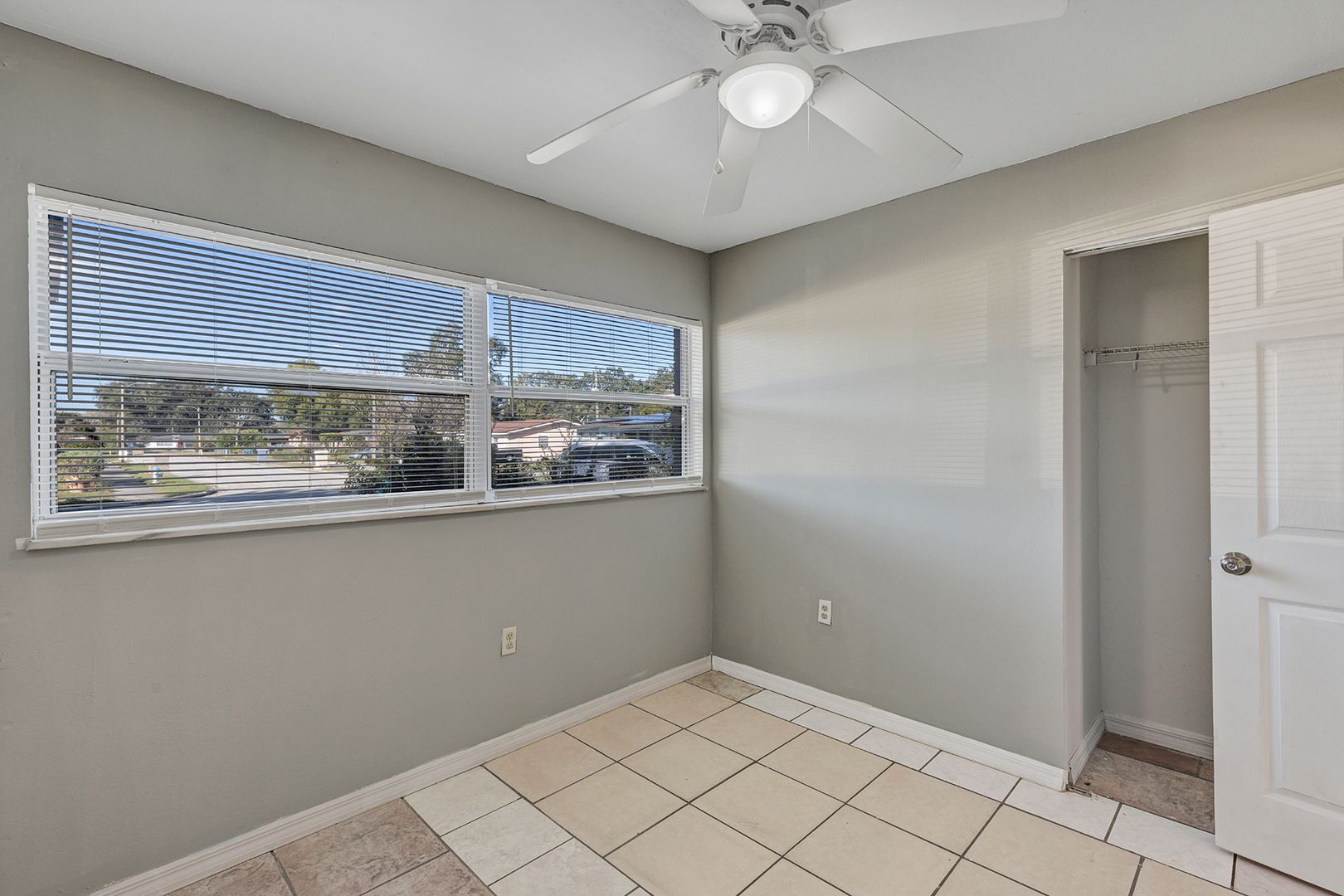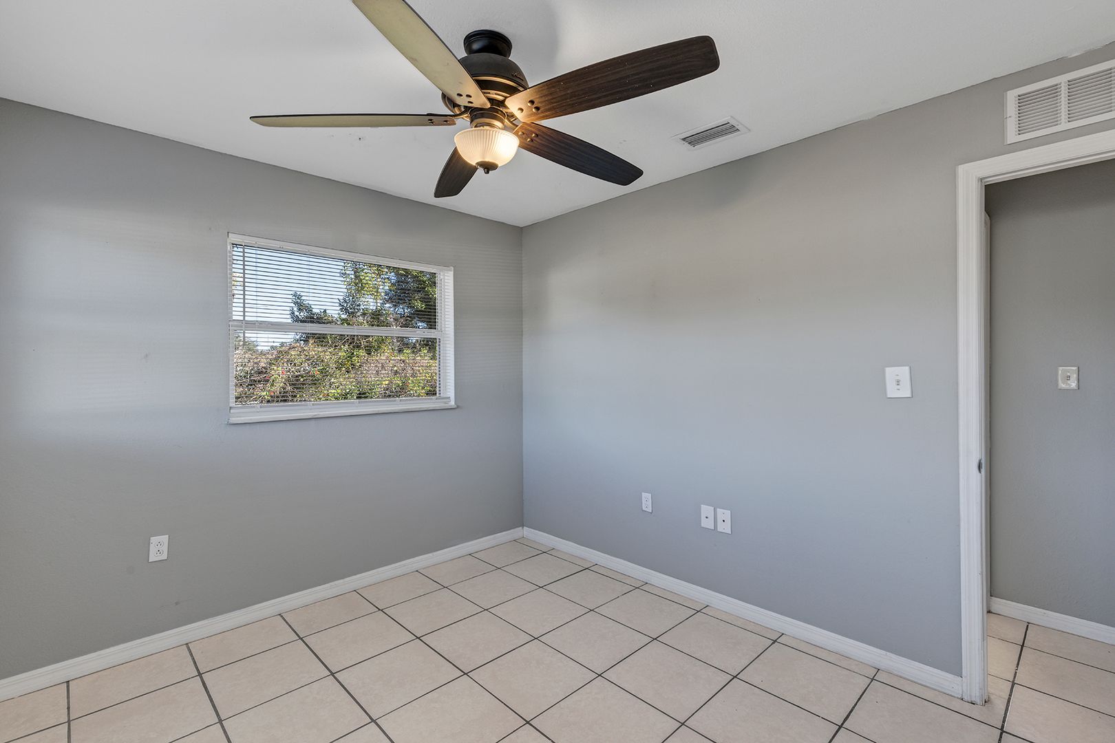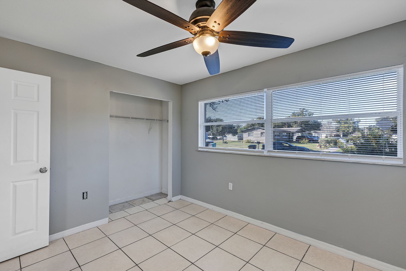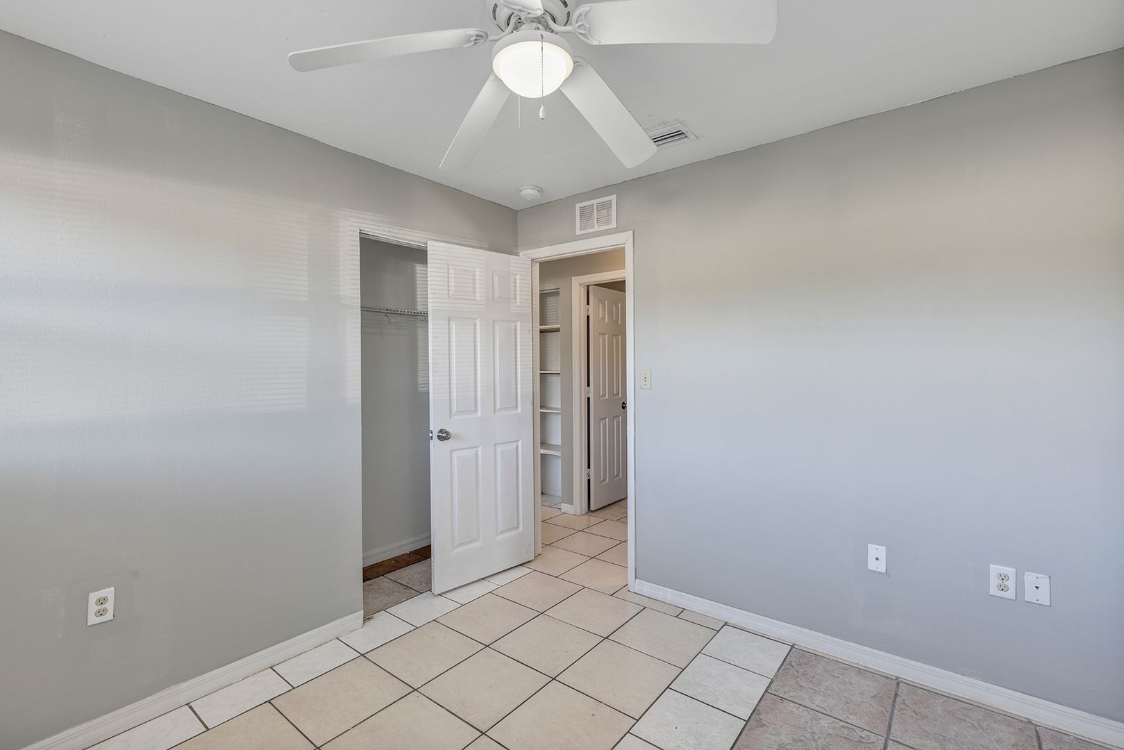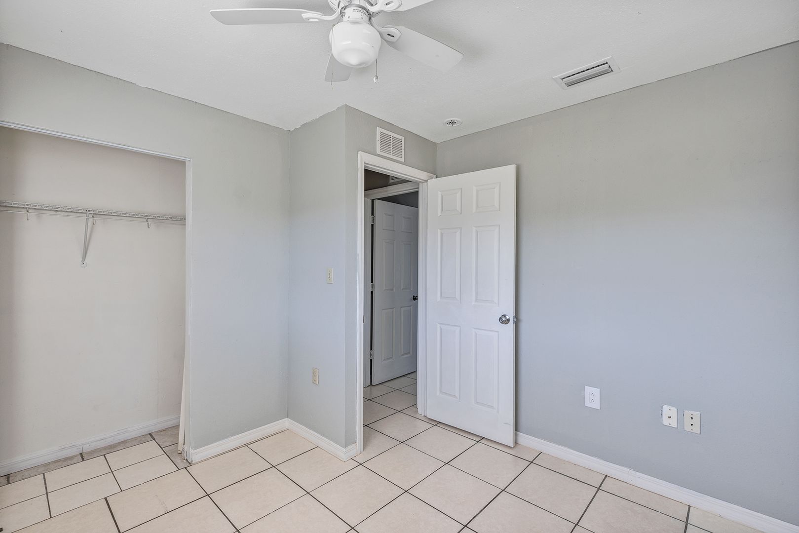 Each of the three bedrooms includes its own closet, offering functional storage and comfortable living space. The spacious bathroom is well laid out, providing plenty of room for daily use.