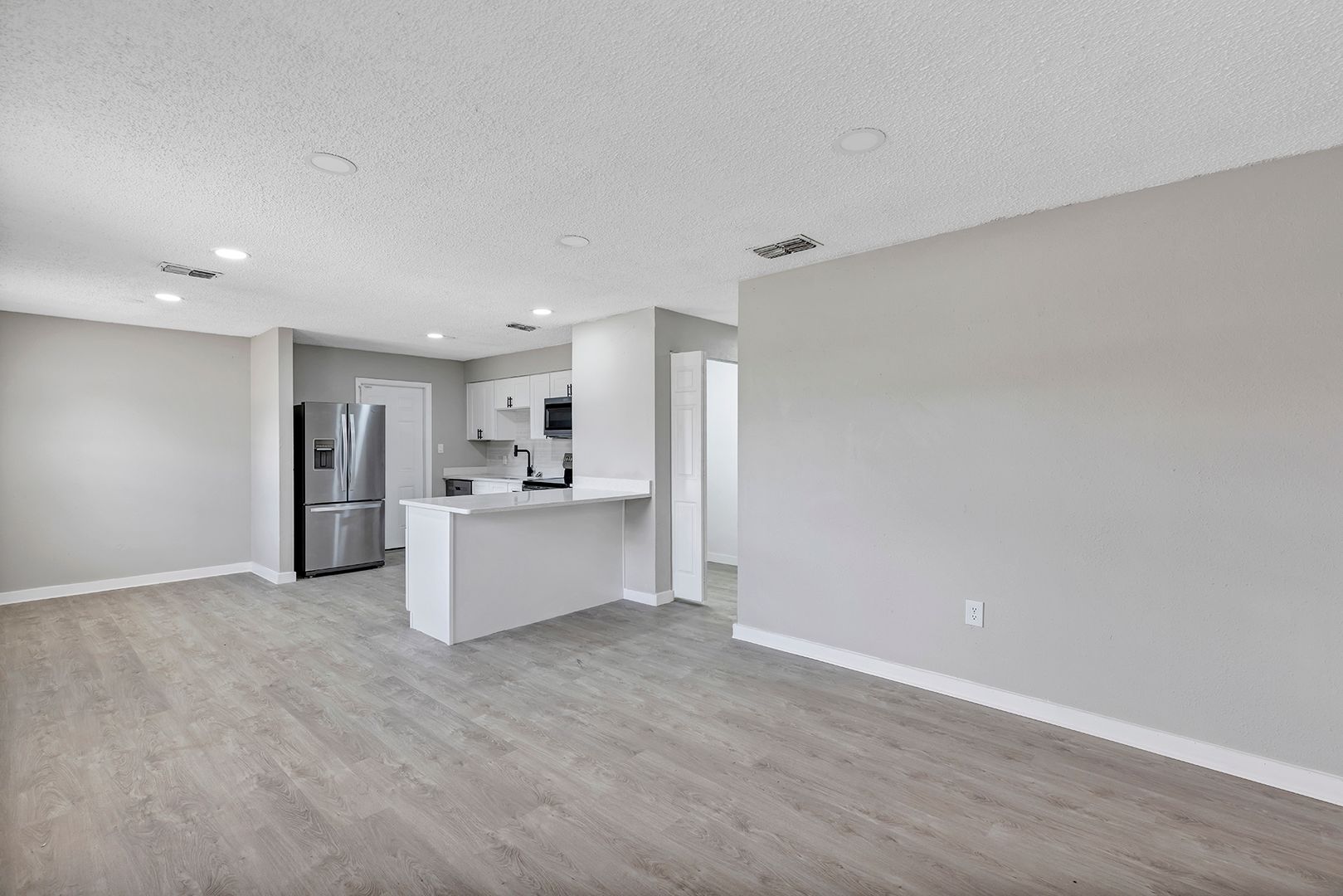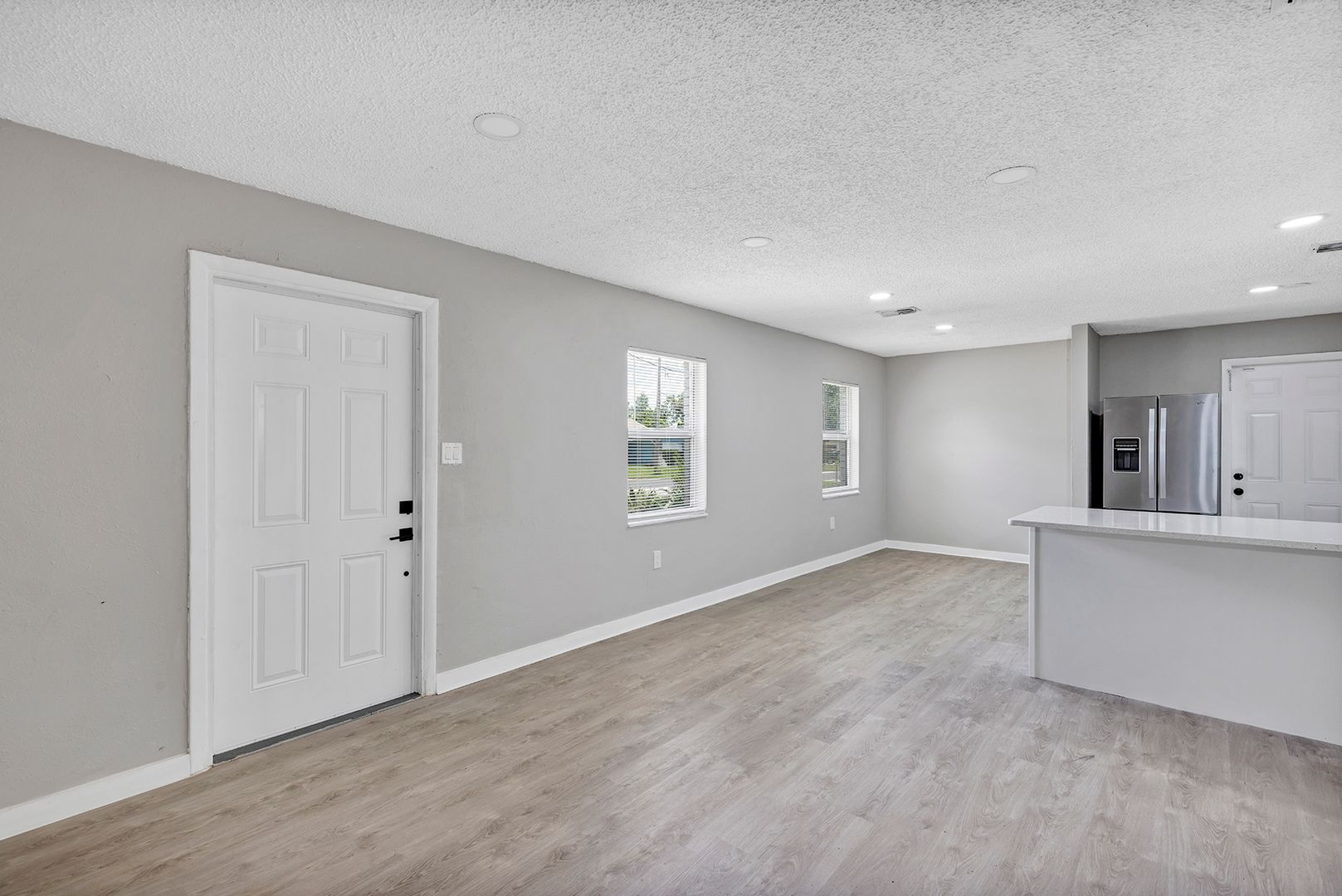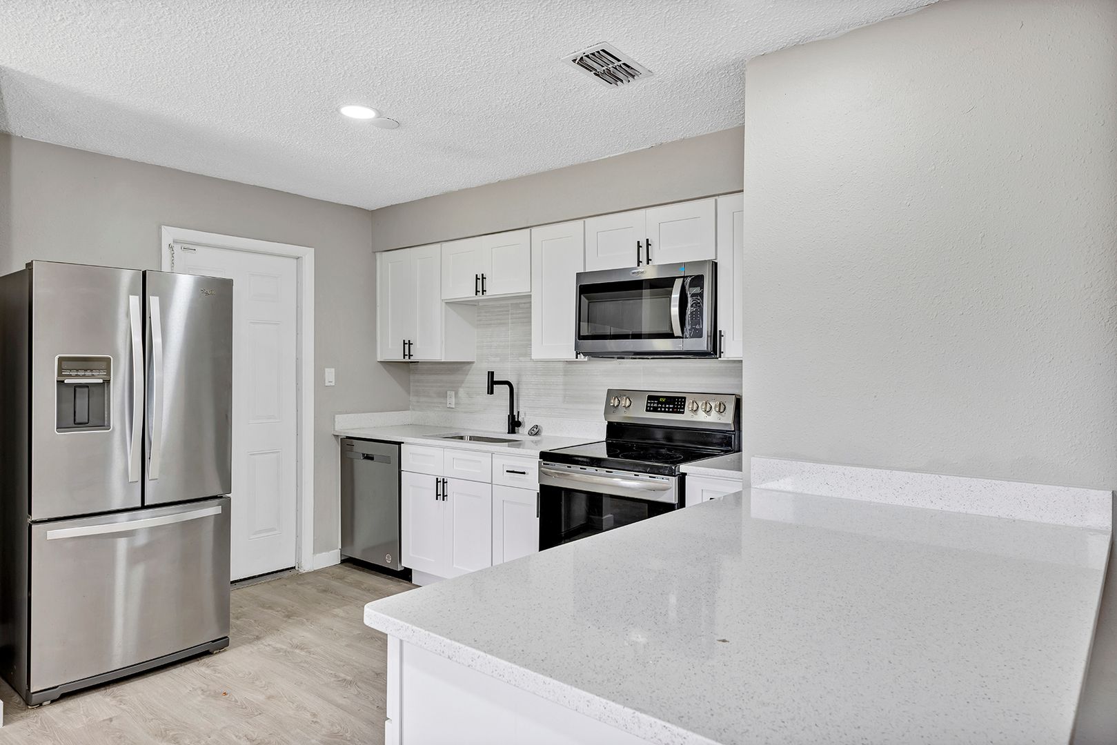 Welcome to 3309 Hickman Ave, a stylishly renovated 3-bedroom, 1-bath home located on a residential street in the heart of Plant City, FL. This charming residence offers exceptional curb appeal with a clean white brick exterior accented by bold black trim. Inside, you’ll find a beautifully updated interior featuring luxury vinyl plank flooring, fresh paint, and plenty of natural light throughout. The designer kitchen is a standout, equipped with white shaker cabinets, quartz countertops, a spacious breakfast bar, matte black hardware and faucet, and a full suite of stainless steel appliances — including a French door refrigerator, dishwasher, microwave, and electric range. The layout is both practical and inviting, perfect for entertaining or relaxing at home.