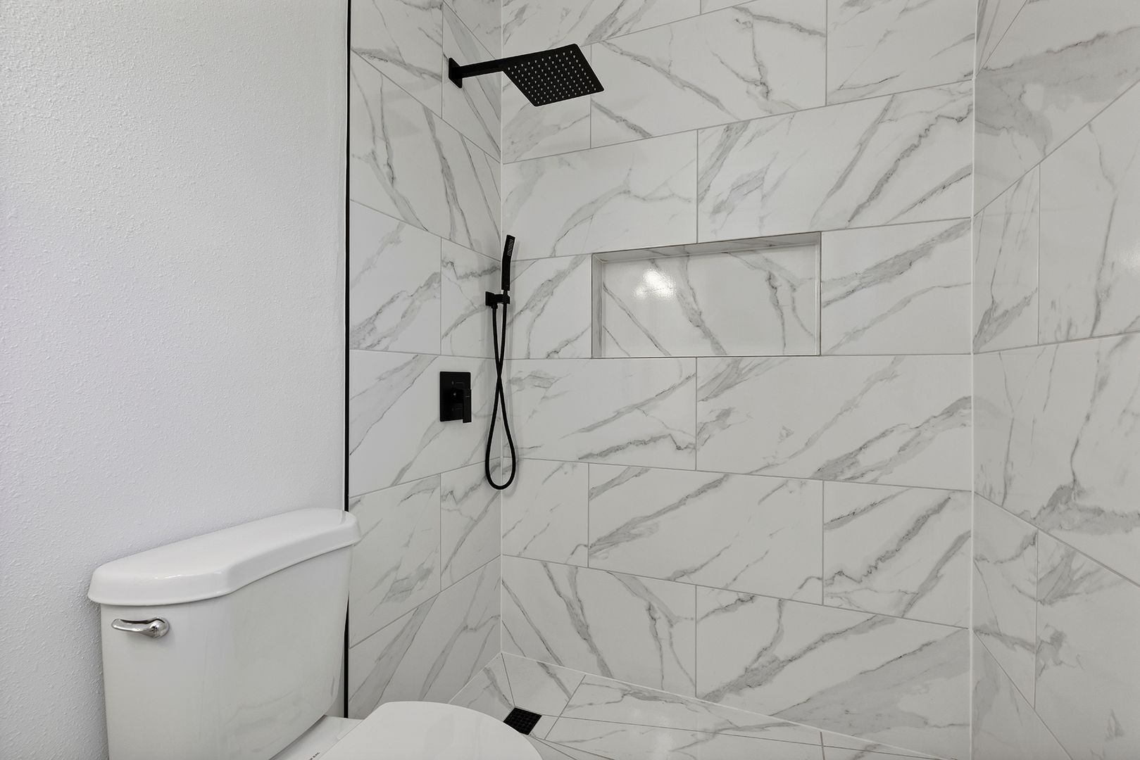 The spacious bedroom provides a relaxing retreat with ample natural light. The bathroom has been fully renovated with an all-tiled, modern design, giving it a clean and contemporary look.