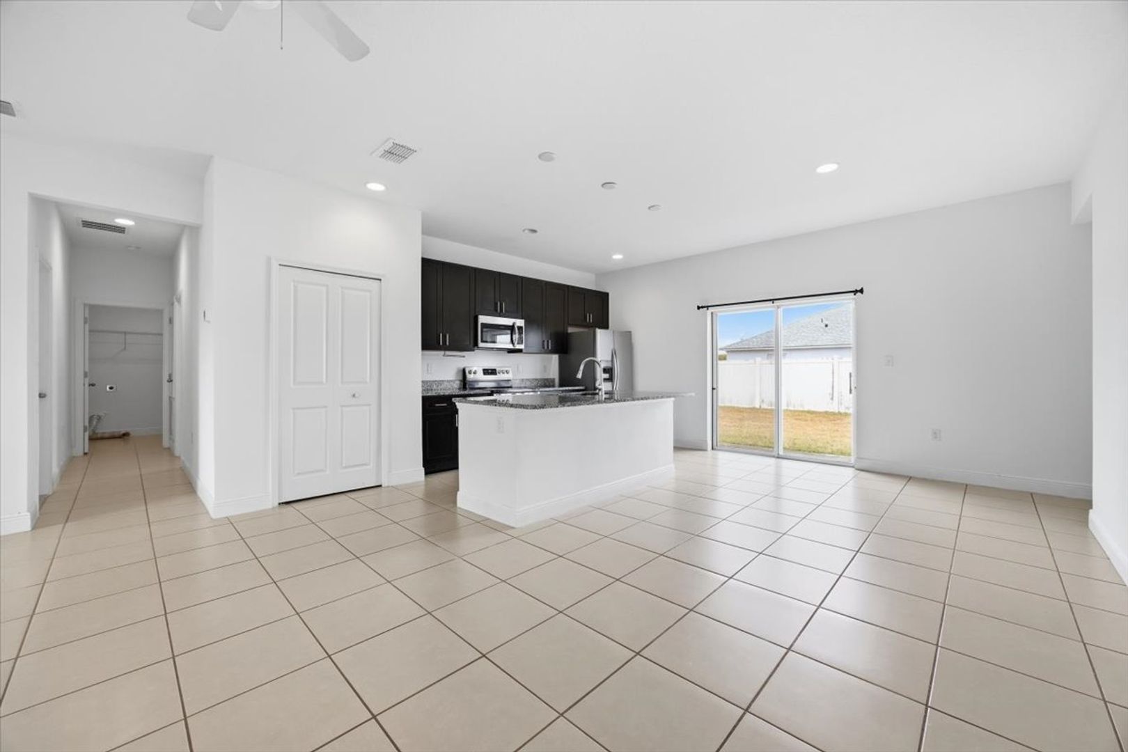 Welcome to this beautifully updated 4-bedroom, 2-bathroom home at 213 Cimarron Dr in the heart of Poinciana, FL. Designed for comfort and modern living, the spacious open-concept layout features a large living room that flows seamlessly through sliding doors to a fenced backyard, perfect for entertaining or relaxing in privacy. The kitchen boasts modern appliances, a generous island ideal for meal prep or casual dining, and elegant granite countertops that combine style with functionality.