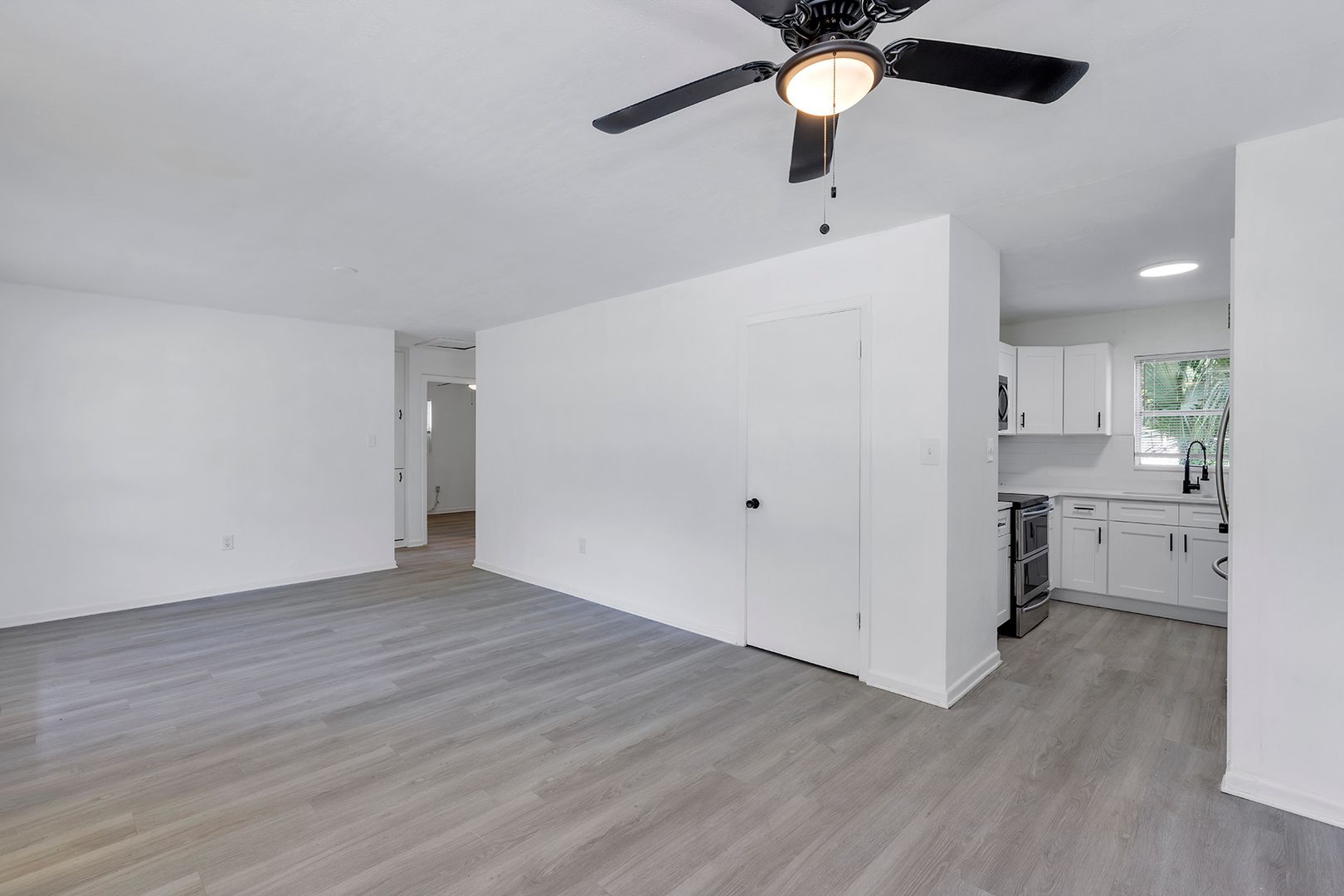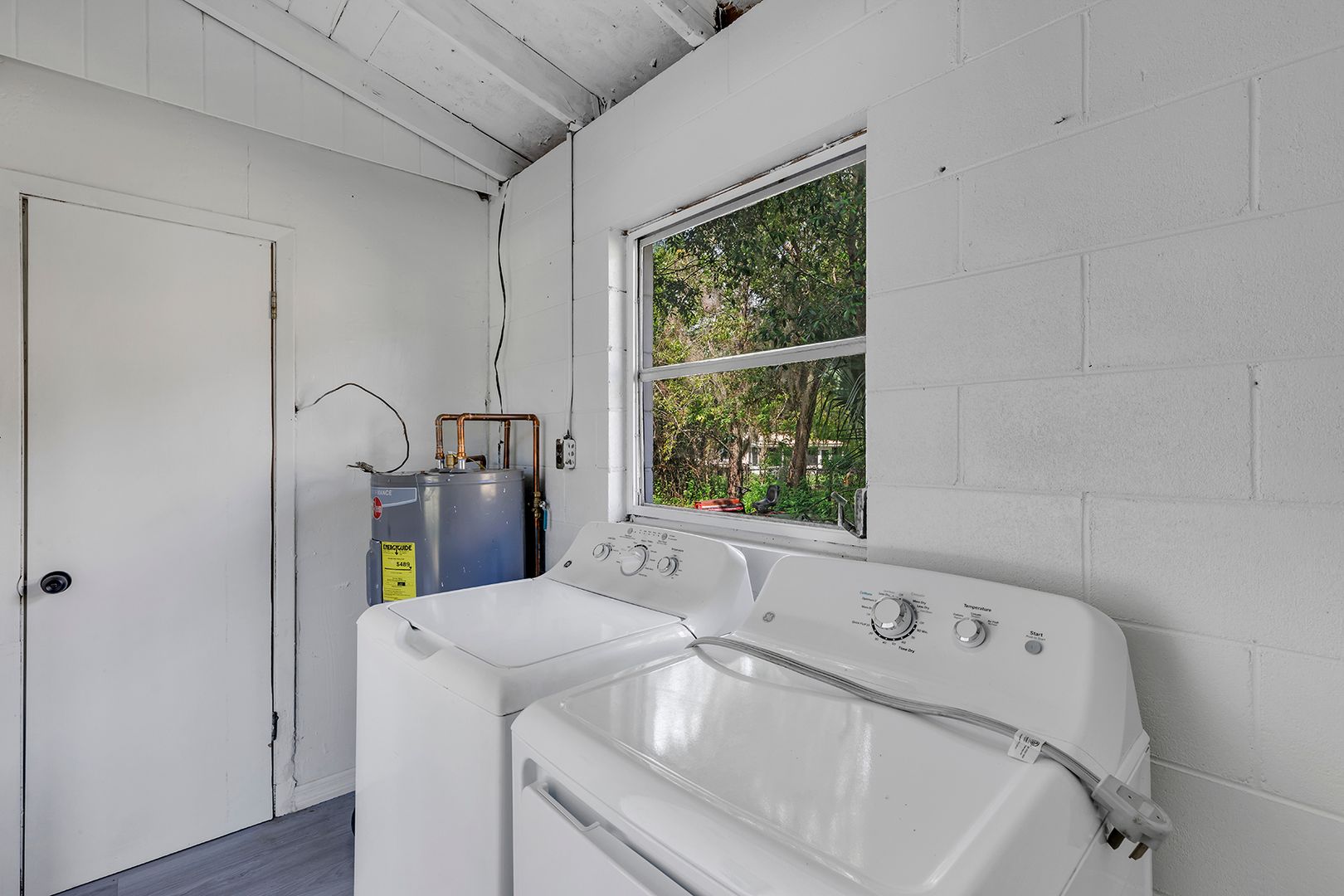 Welcome to 1417 Pembrook, a beautifully updated Florida home that combines comfort, style, and modern convenience. This inviting residence offers three spacious bedrooms, each featuring generous closets, ceiling fans, and freshly painted walls that complement the luxury vinyl flooring throughout. Large, screened windows fill the home with natural light while letting in the refreshing Florida breeze. At the heart of the home, the kitchen boasts polished countertops and a full suite of appliances—including refrigerator, oven, stove, microwave, dishwasher, washer, and dryer—making daily living effortless. The bathroom has been updated with ceramic tile and a relaxing bathtub, creating a private retreat. Step outside to the welcoming porch and enjoy the fully fenced backyard, perfect for outdoor entertaining, gardening, or a safe space for pets and children.With a newer water heater and a reliable HVAC system, this home ensures comfort year-round. Move in faster with the Obligo no security deposit option. Blending thoughtful updates with functional living spaces, 1417 Pembrook is ready to be your next chapter in Florida living.