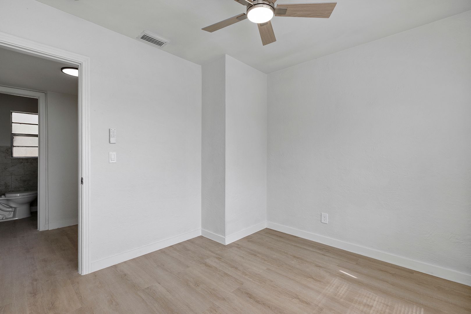 The sleek, updated bathroom showcases clean finishes and a modern look, complementing the home’s fresh updates.